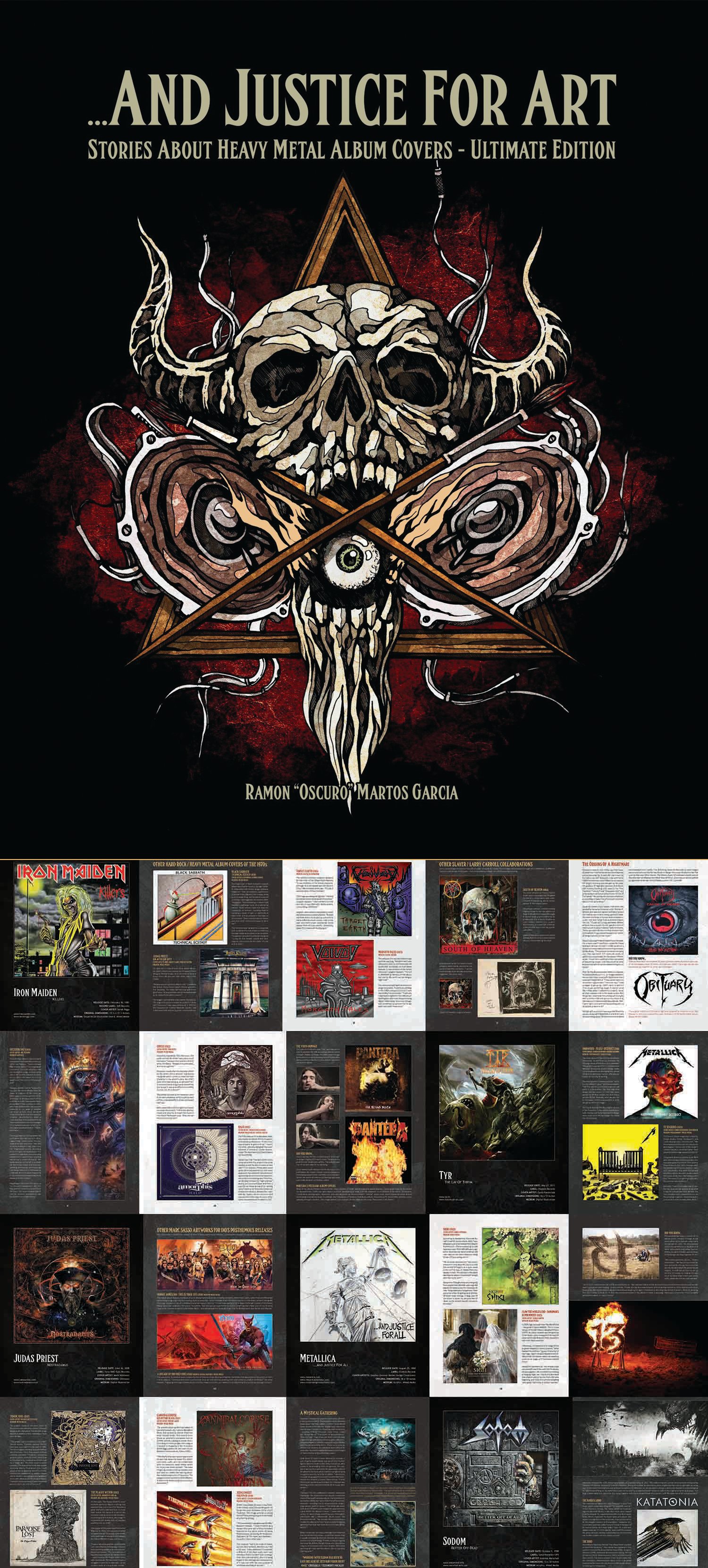 "...And Justice For Art - Ultimate Edition" includes important bands like Iron Maiden, Black Sabbath, Metallica, Sodom, Tyr, Imperial Triumphant, Amorphis, Judas Priest, Deep Purple, Blind Guardian, Witchfinder General, Testament, Helloween, Slayer, Sigh, Borknagar, Skyclad and many more. The book also features updated/rewritten/expanded material initially included in the first "And Justice For Art" volume published in 2015, which has been out of print for several years.